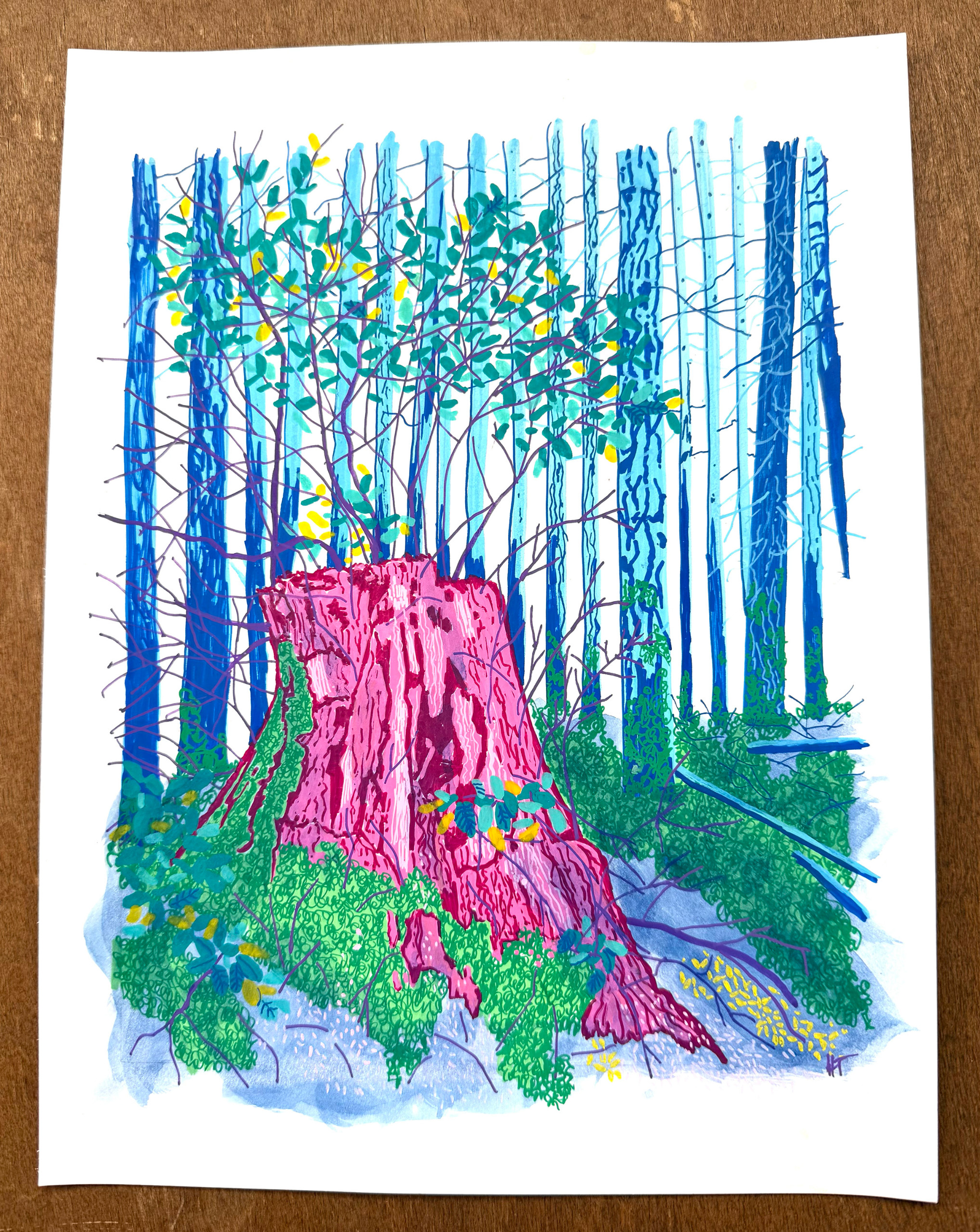 9"x12" acrylic paint pen and pastel drawing on archival paper includes 11"x14" mat and backing in clear sleeve.